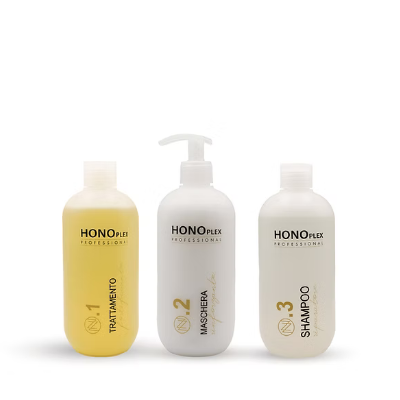 Hono Plex rappresenta l'ultima frontiera nella cura dei capelli danneggiati, offrendo una soluzione completa e innovativa per riparare i legami spezzati e migliorare la salute dei tuoi capelli. Questo kit comprende tre prodotti essenziali: 1 trattamento rigenerante, 1 maschera intensiva e 1 shampoo delicato, formulati con una tecnologia avanzata che agisce a livello molecolare.